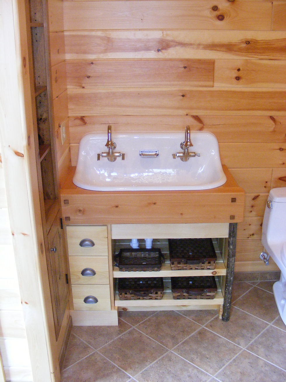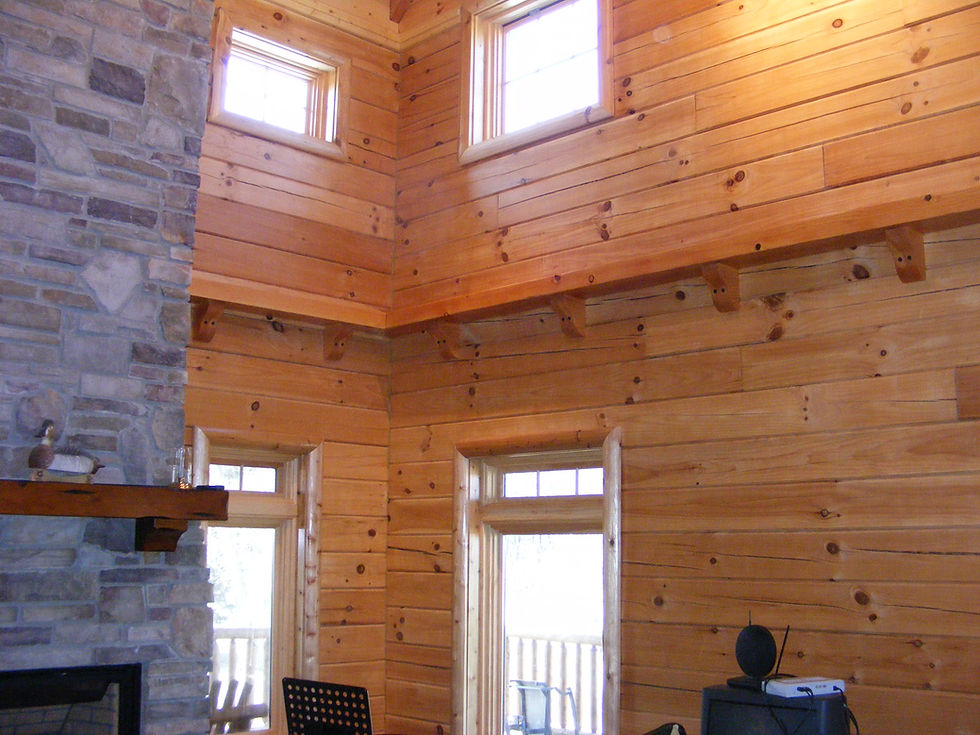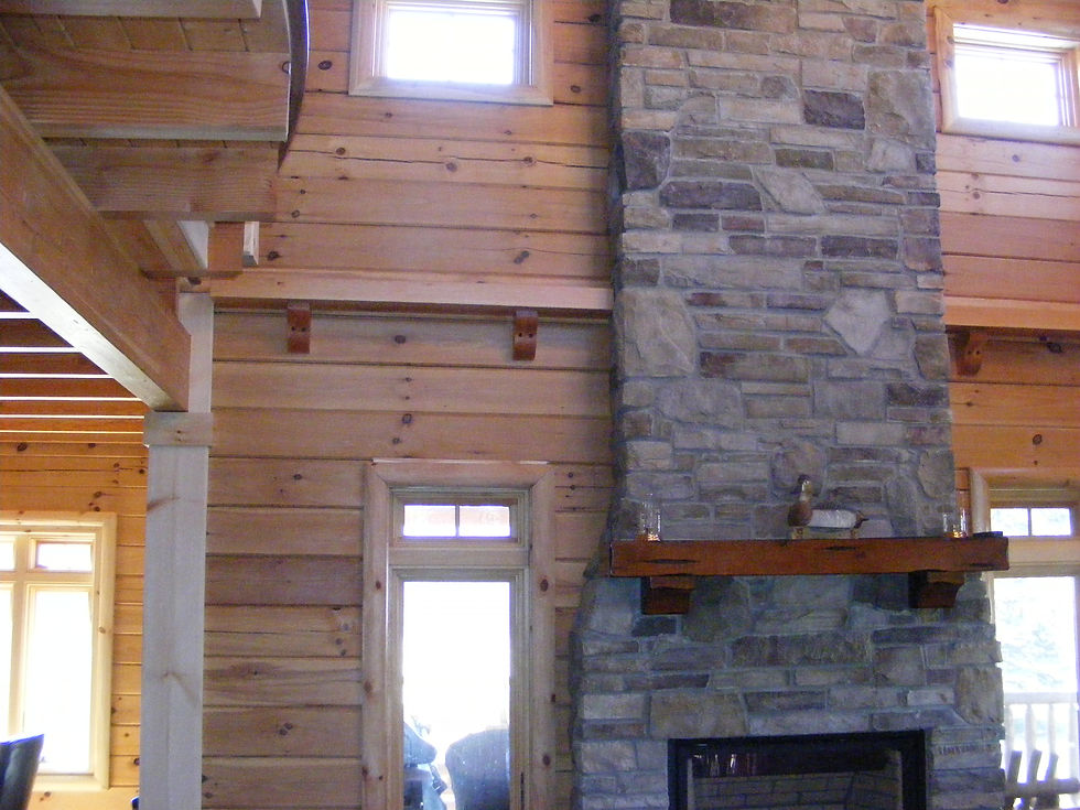 This remodel was for a log home. We fabricated and installed a shelf around the great room. we also designed and built the log cabin bathroom